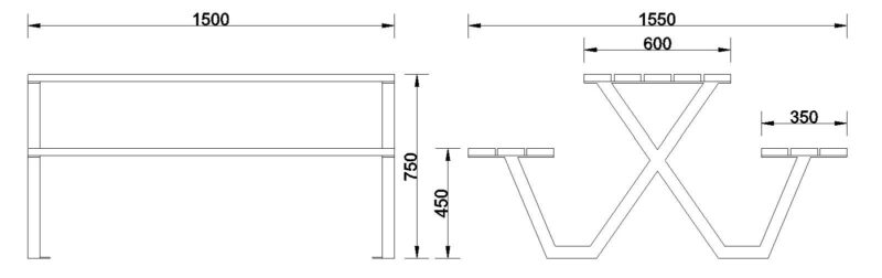 1500 x 1550 x 750 mm
